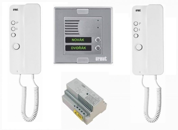 1150/302 Souprava domovního tel. pro 2 účast., tel.1150/1, zdroj 786/11, tl. panel 1148.