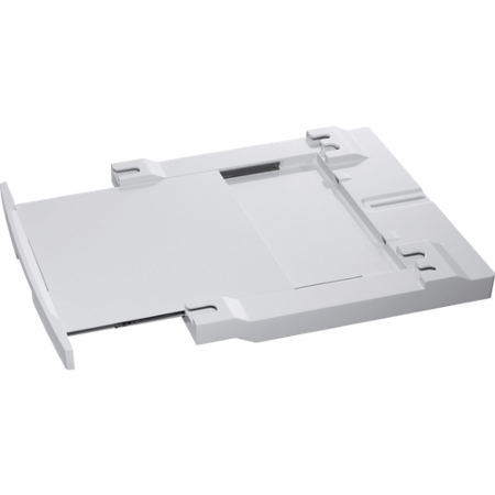 Uložení sušičky na pračku představuje prostorově úsporné řešení. Spojovací sada s výsuvnou policí vám poskytuje praktické místo pro třídění prádla po vyjmutí z pračky nebo jeho složení po vyjmutí ze sušičky.