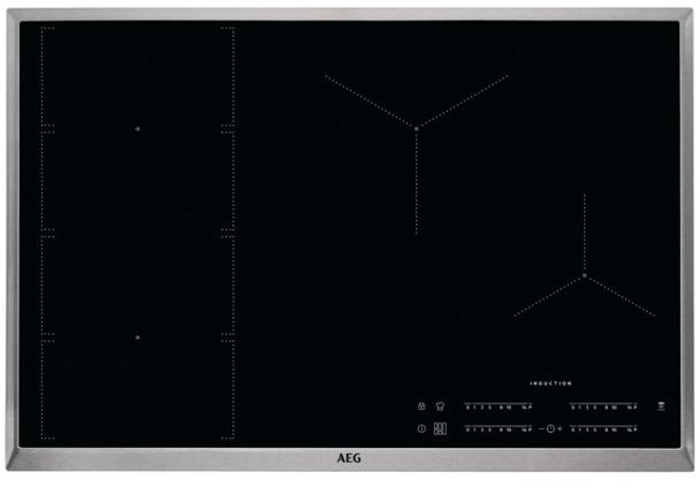 Varná deska indukční, 80cm, Propojení varných zón FlexiBridge, Posuvné DirectTouch, digitální ukazatel pro každou zónu, Barva: Černá, Hob2Hood, PowerBoost, PowerSlide, Dětská pojistka, Rozměr ŠxH 76.6x51.6cm Další informace