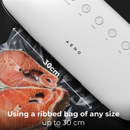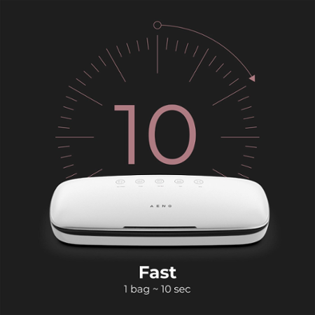 Sací výkon 65 kPa umožňuje během několika sekund účinně zavakuovat maso, ryby, drůbež, ovoce a zeleninu, koření nebo hotová jídla ve speciální nádobě či sáčku