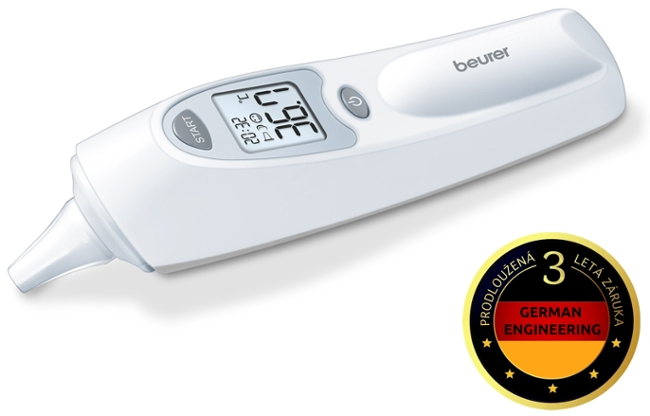 Díky infračervené měřicí technice je měření rychlé a přesné, provádí se během několika sekund. Teploměr je vybaven indikátorem horečky, který vám signalizuje horečku při teplotě od 38,0 °C a varovným tónem již od 37,5 °C. Zobrazení teploty lze volit mezi stupni Celsius a Fahrenheit a navíc teploměr zobrazuje i pokojovou teplotu.
