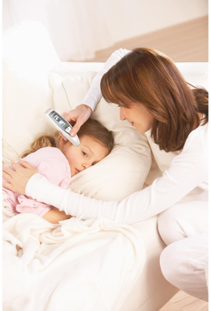Bezpečnost měření podporuje optický alarm v případě vysoké teploty, a to s pomocí LED kontrolky. Červená kontrolka signalizuje horečku, zatímco zelená ukazuje, že vše je v pořádku.
