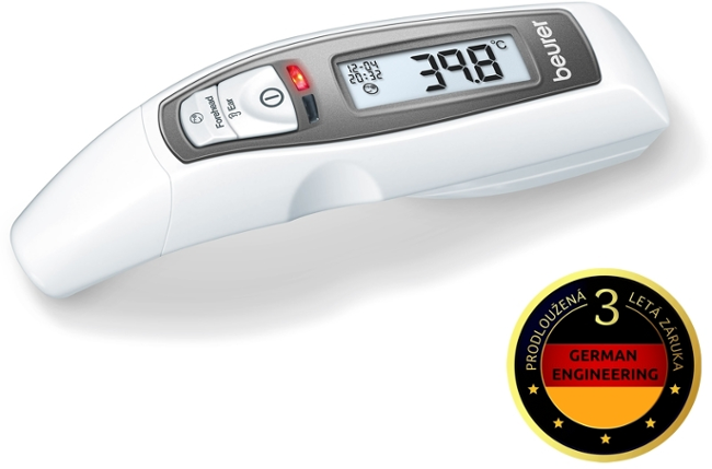 Beurer FT 65 digitální bezdotykový multifunkční teploměr přináší komplexní řešení pro měření teploty s šesti výjimečnými funkcemi. Tento moderní teploměr umožňuje rychlé a přesné měření teploty těla, a to jak na čele, tak i v uchu, s dobu měření pouhých 1 sekundy.