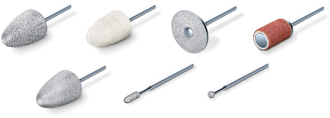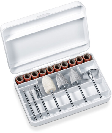 Nástavce pro péči o nehty a pokožku, které jsou součástí balení: