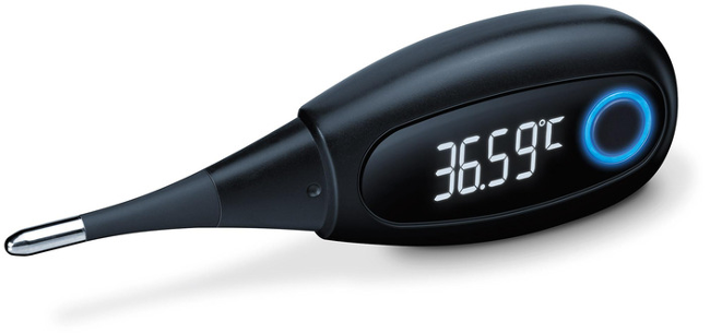 Teploměr Beurer OT 30 je vybaven zobrazením na 2 desetinná místa a kontaktní měřicí technikou, která umožňuje měření teploty jak orálně, tak vaginálně. Doba měření je přibližně 3 minuty, což je doporučená doba měření po NFP (Naplnění folikulární fáze). Díky bezdrátovému přenosu dat přes Bluetooth® můžete snadno a rychle sdílet výsledky měření s aplikací „Ovy“ android nebo apple.