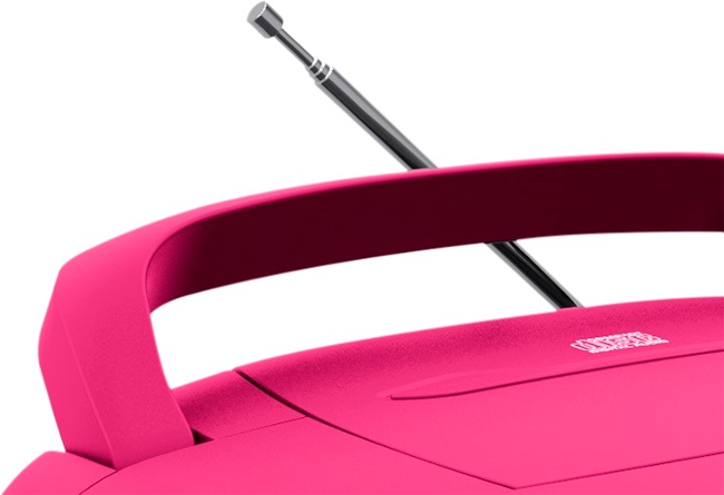 Přenosný CD / MP3 přehrávač s FM rádiem a USB vstupem. Součástí jsou dva vestavěné reproduktory vybavenými LED diodami pro světelné efekty.