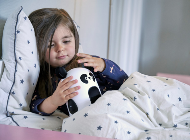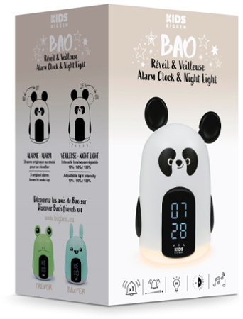 S tímto novým kamarádem bude rádo usínat každé dítě. Stiskněte ouško zvířátka a tím aktivujte světlo. Stiskem paží po stranách upravíte intenzitu. Stisk druhého ouška nastavíte budík, který se aktivuje v požadovaný čas. Intenzita displeje hodin na bříšku je také snadno nastavitelná.