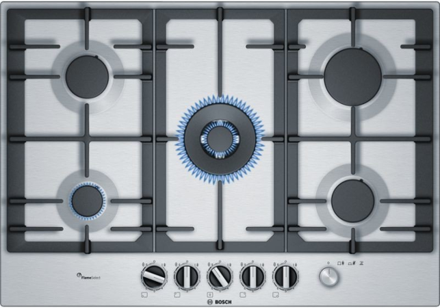 FlameSelect je inovativní patentovaná technologie přesného řízení výkonu plynového hořáku v rozsahu 1 až 9 stupňů. Termoelektrická pojistka zhasnutí plamene: Všechny plynové varné desky mají termoelektrickou pojistku zhasnutí plamene integrovanou do hořáku. Jakmile z jakýchkoliv důvodů zhasne plamen, přeruší pojistka automaticky přívod plynu.Elektrické jiskrové zapalování: Pro jednodušší zapálení hořáku je u všech varných desek Bosch elektrické jiskrové zapalování integrováno do ovládacího knoflíku. Stačí lehký stisk jednou rukou, otočení knoflíkem a plamen je na světě.