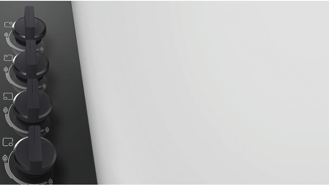 Elektrické jiskrové zapalování: Pro jednodušší zapálení hořáku je u všech varných desek Bosch elektrické jiskrové zapalování integrováno do ovládacího knoflíku. Stačí lehký stisk jednou rukou, otočení knoflíkem a plamen je na světě.