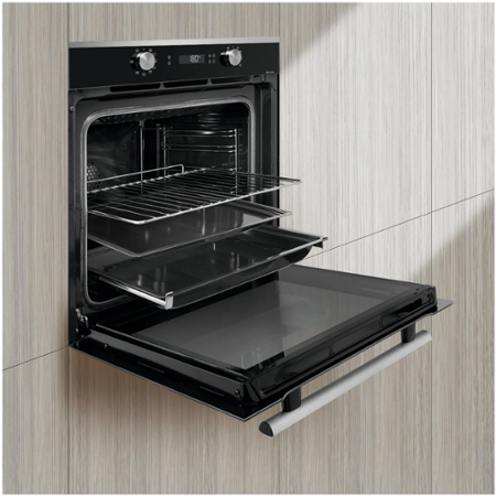 Multifunkční pyrolytická trouba s pyrolitickým čištěním; provedení černé sklo, nerezové lišty, madlo a otočné voliče; objem 73 litrů; energetická třída A+; ovládání pomocí dvou otočných voličů, displej s dotykovým ovládáním a bílým podsvícením; Průvodce pečením nabízí předprogramované recepty (12). Stačí zadat hmotnost a typ pokrmu a trouba automaticky určí způsob přípravy, teplotu, výšku pokrmu a dobu přípravy. SmartAssist - navrhuje teplotu a délku pečení podle zvolené pečící funkce; MultifunkcePlus: 8 funkcí trouby, mj. „FLAVOR Grill“ gril pro konečné zapečení; komfortní pyrolytické čištění se 3 režimy: Pyro Max + Pyro Eco + Pyro Express; BOOST – urychluje nárůst teploty; Cold Door - celoskleněná dvířka se 4 skly; Soft Close zavírání dvířek; Auto Stop systém; Příslušenství: šestiúrovňové chromované vodící rošty, 1x teleskopický výsuv plechu pro pohodlné a bezpečné použití, díky výsuvným kolejnicím můžete vyndávat a vkládat pokrmy do trouby, aniž byste se popálili., 1 ks bezpečnostní rošt, 1 ks mělký plech 20 mm, 1 ks hluboký plech 45 mm; Multifunkční pečení s ventilátorem pomocí prvku umístěného kolem ventilátoru je teplota rovnoměrně rozdělena v celém prostoru trouby. Můžete současně připravovat různé pokrmy na 3 úrovních, aniž by se mísily pachy, a zachovat strukturu pokrmů; rozměry (VxŠxH): 59,6 x 59,2 x 54,4 cm