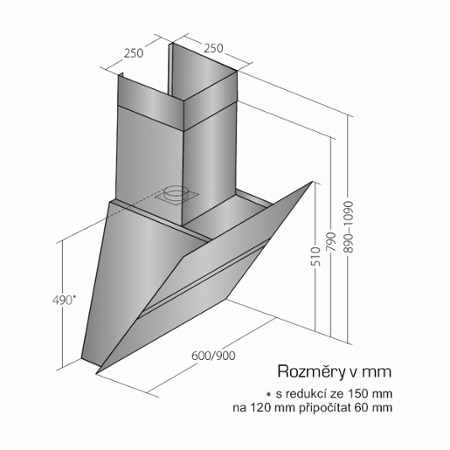 Výška k vrcholu příruby: 490 (pr. 150) / 550 (pr. 120) mm