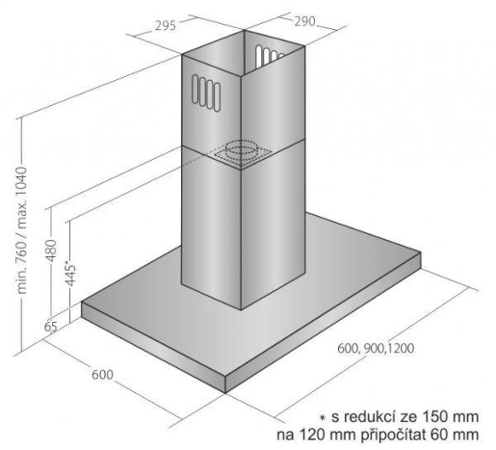 Min. výška nad plynovou deskou: 750mm