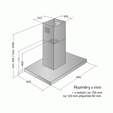 Průměr odtahu: 150, zdarma redukce 150 / 120 mm