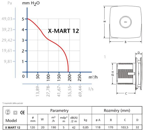 Axiální ventilátor na zeď, do stropu či do okna, hlučnost 42 dB, barva nerez