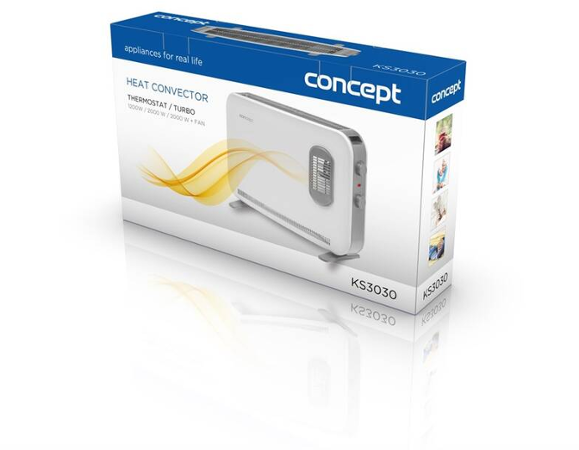 S konvektorem KS3030 od Conceptu vás zima nezaskočí. Rychle vyhřeje požadovaný prostor a díky termostatu, který automaticky spíná a vypíná topné těleso, udržuje zvolenou teplotu. Zbytečně nedochází k přetápění prostor a zároveň šetří spotřebu energie.