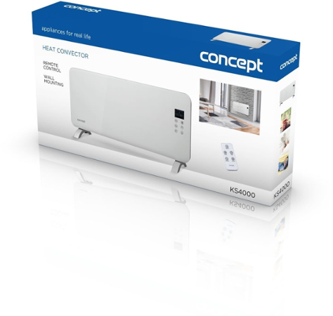 Máte moderně zařízený byt a uvažujete o koupi konvektoru? KS4000 je perfektní volbou. Je krásným doplňkem do každého interiéru díky bílému a luxusnímu tvrzenému sklu. Pokud budete chtít konvektor pověsit na zeď, využijete montážní sadu, která je součástí balení. Konvektor pověšený na zdi vypadá jako krásný designový prvek. Můžete si ovšem vybrat i variantu, kdy přidáte přídavné nožičky a můžete ho používat jako volně stojící.