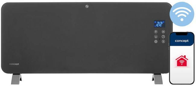Propojením s mobilní aplikací Concept Home můžete konvektor ovládat i na dálku a odkudkoliv, kde máte k dispozici internetové připojení. Pohodlně si tak doma vytopíte před návratem z práce nebo chatu před vaším příjezdem. Zároveň topení na dálku také vypnete, pokud se např. někde zdržíte. Přes mobilní aplikaci můžete nastavit časový plán vytápění na celý týden.