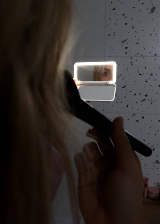 Zrcátko vám bude svítit až 3 h na jedno nabití, což oceníte zejména na cestách a místech bez přístupu k elektrické síti. Zrcátko lze snadno dobít pomocí USB kabelu přes powerbanku, takže budete mít kontrolu nad svým vzhledem, ať už jste kdekoliv. Plné dobití zabere necelé 3 h.