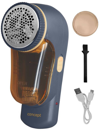 Odžmolkovač - trojitý břit, odnímatelný zásobník, ochranný kryt, nabíjení přes konektor USB-C, kabel součástí balení, 43 minut provozu na jedno nabití, součástí je kartáček na čištění, modro-hořčicová barva Další informace