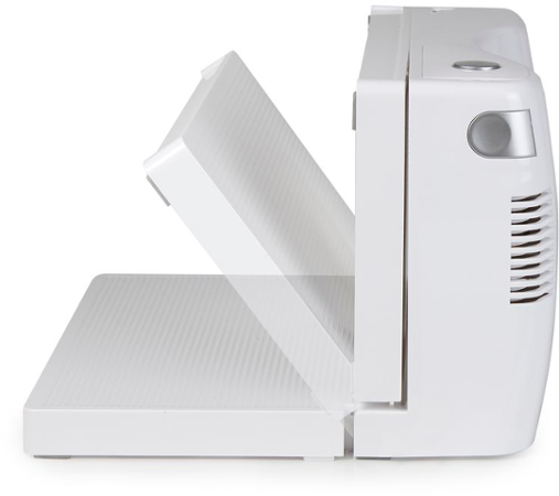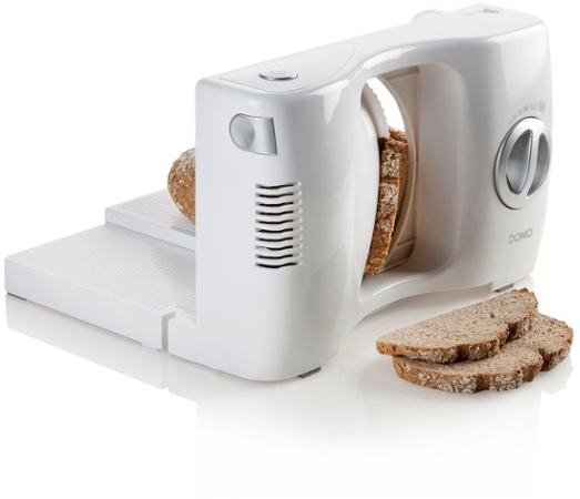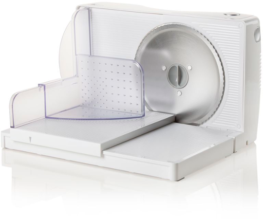 Elektrický kráječ plastový, sklopný kráječ s indukčním motorem., nůž 17 m Solingen., nastavitelná tloušťka krájení od 0 do 15mm, bezpečnostní vypínač.