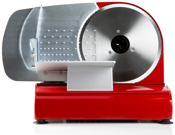Kráječ potravin, elektrický, toušťka 1-15 mm, nakloněná pracovní deska, červená