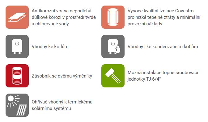 - Díky upraveným rozměrům lépe vrství teplou vodu