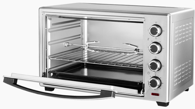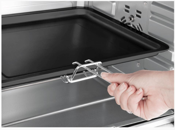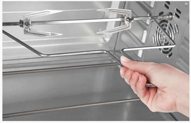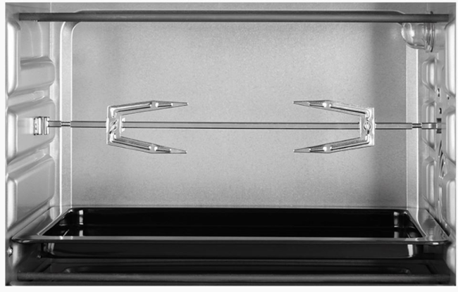 - Příslušenství: pečící plech, rošt, grilovací rožeň, madlo pro manipulaci s grilovací jehlou, držák pro manipulaci s pečícím plechem