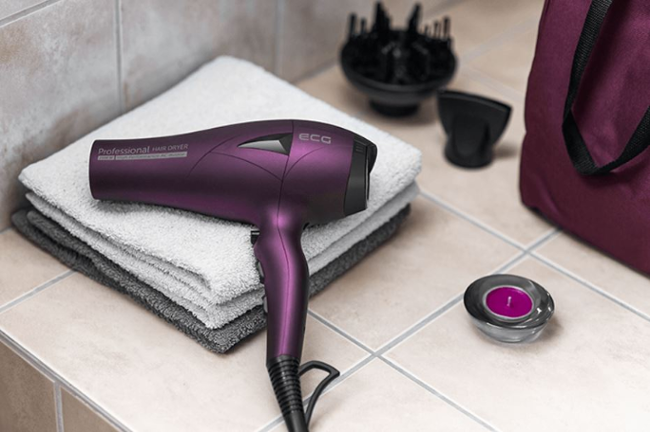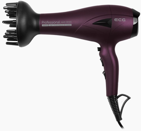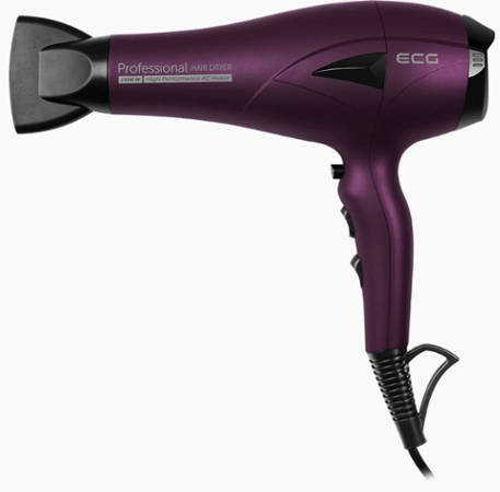 Fén na vlasy Professional, příkon 2 100 W, výkonný AC motor, funkce ionizace, 2 rychlosti, 3 teploty vzduchu, cestovní pouzdro, difuzér, pojistka proti přehřátí, fialová Další informace