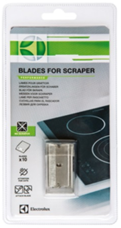 Tyto náhradní břity škrabky se používají na sklokeramickou desku. Účinně odstraní připálené zbytky jídla a odolné skvrny bez poškrábání povrchu. Každé balení obsahuje deset nožů, které lze snadno nasadit na škrabku.