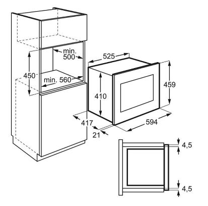Vestavná mikrovlnná trouba, objem 25 l, 800 W, gril, otočný talíř, 5 programů