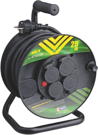Gumový prodlužovací kabel na bubnu-4 zásuvky 25m Parametry: ~230 V 4,8 A max./1100 W navinutý 16 A max./3200 W plně rozvinutý 4 zásuvka (IP 44) s tepelnou pojistkou Vodič: H05RR-F 3Gx1,5 mm2 Dé Další informace