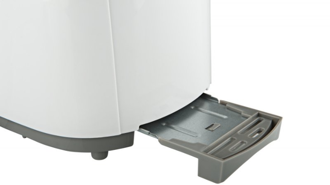 - Tato praktická vyjímatelná zásuvka slouží pro vysypání drobečků. Topinkovač je vybaven prostorem pro navinutí napájecího kabelu.