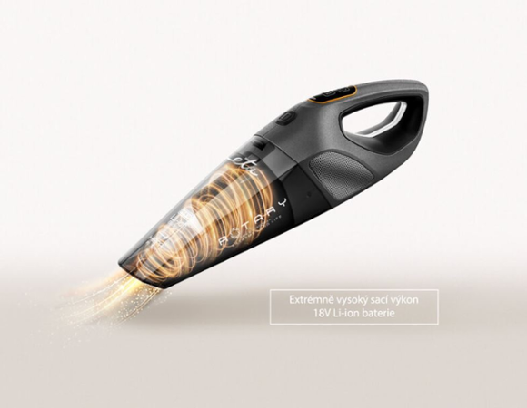 Ruční vysavač Rotary, objem nádoby 400 ml, vysoký sací výkon, elektrický rotační kartáč, HEPA filtr, rukojeť s protiskluzovým povrchem, doba provozu 30 min, suché vysávání Další informace