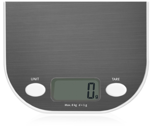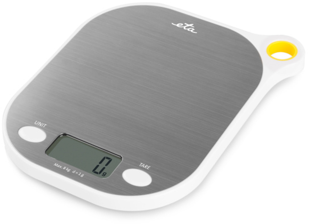 - Kuchyňská váha ETA Grami má nerezovou vážící plochu s kapacitou až 8kg a přesností na 1g.
