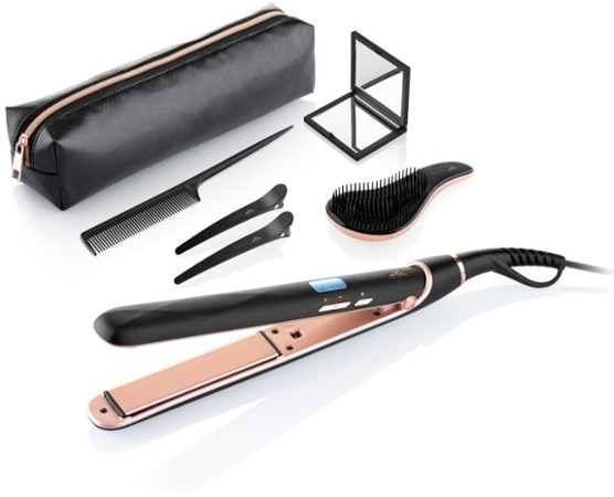 - Co potěší ženu víc než praktická a elegantní žehlička na vlasy? No přeci žehlička na vlasy v dárkovém setu! V dárkovém pouzdře najdete kromě žehličky také kartáč na vlasy, hřeben, dva klipy pro sepnutí pramenů a praktické zrcátko. Dárkové pouzdro funguje skvěle i jako cestovní taška, celý set tak můžete mít všude s sebou.