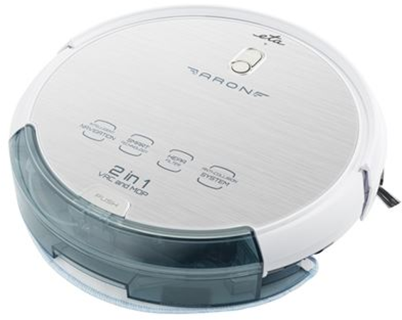 Robotický vysavač ETA Aron 2 v 1 se smart aplikací je praktickým úklidovým pomocníkem, který vysává i mopuje za vás. Uvnitř skrývá moderní digitální motor s extra dlouhou životností. Vysoký sací výkon je navíc doprovázen trojnásobnou filtrací s HEPA filtrem, který zachytí i ty nejmenší částice prachu a nečistot.