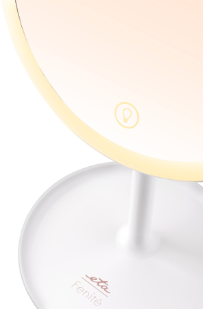 Důležitou součástí kosmetického zrcátka ETA Fenité je praktické osvětlení po jeho obvodu. Vybrat si můžete ze 3 barev osvětlení (3000–6500K) a několika intenzit. Správné osvětlení je při líčení základ.
