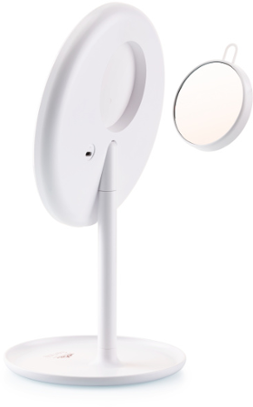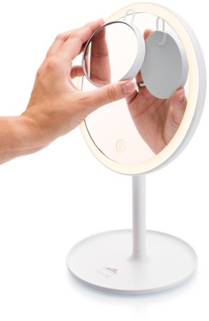 Zrcátko vyniká svým bezdrátovým provozem s výdrží baterie až 4 hodiny. Dobíjení probíhá přes USB-C kabel a je možné zrcátko používat i připojené k síti. Nechybí zde ani odkládací plocha na šperky.
