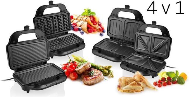 - Sendvičovač 4 v 1 - sendvičovač (trojúhelníky), sendvičovač (lastury), vaflovač, gril