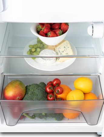 Chladící část je prakticky rozčleněna skleněnými policemi. Nechybí ani transparentní šuplíky a dveřní přihrádky na láhve a skleničky. Po otevření vás přivítá úsporné LED osvětlení, díky němuž mnohem snáze najdete přesně to, na co máte chuť.