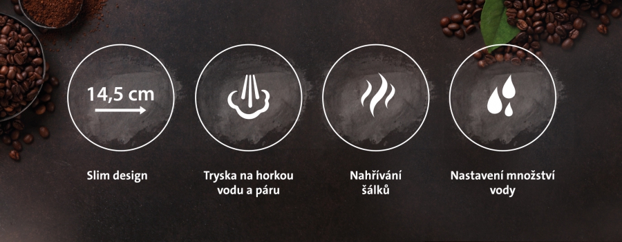 • Funkce horké vody pro přípravu teplých nápojů