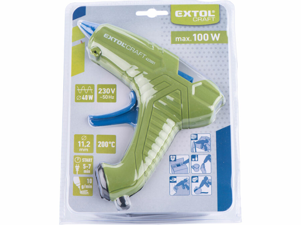 Lepící tavná pistole je určena k rychlému slepení papíru, korku, dřeva, kůže, textilie, umělé hmoty, keramiky atd. Páčka mechanického posuvu umožňuje citlivé, plynulé a přesné dávkování roztaveného lepidla na požadované místo.