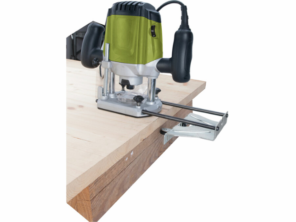 - bočním vodítkem s vodícím kolečkem lze frézovat souběžné oblé profily a díky hrotu lze vytvářet kruhové profily uvnitř *plochy materiálu otáčením horní frézky kolem tohoto zabodnutého hrotu
