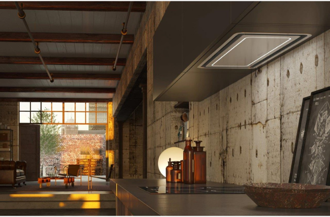 Na první pohled zaujme design se zaoblenými rohy a zcela rovná pohledová část výrobku. Filtry překrývá panel tlumící hluk, tradiční kryty světel jsou nahrazeny úzkým obvodovým LED páskem, který kopíruje vnější tvar panelu a dokonale osvětluje pracovní plochu. Po zabudování je tak digestoř zcela hladká, v jedné rovině se spodní částí skříňky.