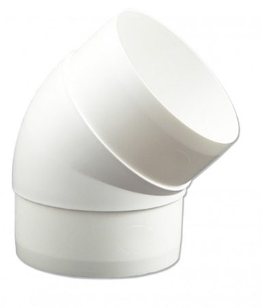Koleno plastové kulaté v úhlu 45° je určeno k ohybům plastových vzduchovodů a to tak, že se do sebe jednoduše zasunou. Koleno je vhodné do max. teploty 45°C a je vyrobeno z plastu ABS v bílé barvě.