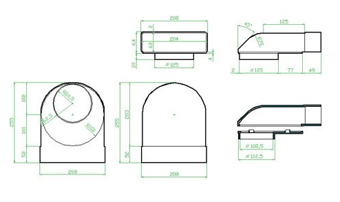 Přechodové koleno s osovou regulací se využívá k napojení potrubí různých průměrů, nebo komponentů - přechod z kulatého potrubí v průměru 125 na ploché potrubí v průměru 125. Redukce má otočné kulaté hrdlo o 360°, které lze nastavit přesně dle vašich potřeb. Koleno je určeno do max. teploty 45°C a je vyrobeno z hmoty ABS v bílé barvě.
