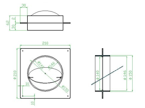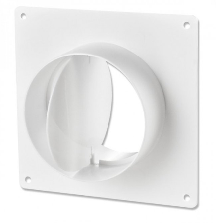 Rámeček plastový kulatý je určen k průchodu vzduchovodů přes zeď. Přichycuje se do zdi pomocí šroubů a je vybaven spojkou se zpětnou klapkou pro spojování vzduchovodů a zabránění vracení vzduchu. Rámeček je vyroben z hmoty ABS v bílé barvě.