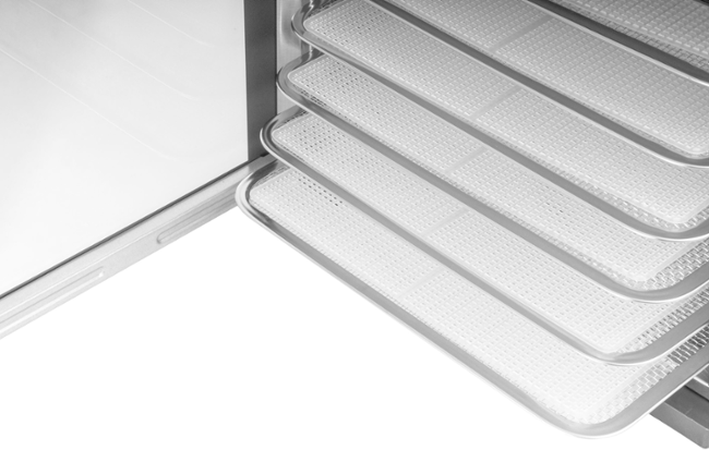 - Horizontální proudění vzduchu pro dokonalé a rovnoměrné sušení potravin