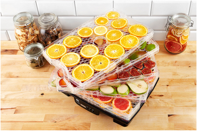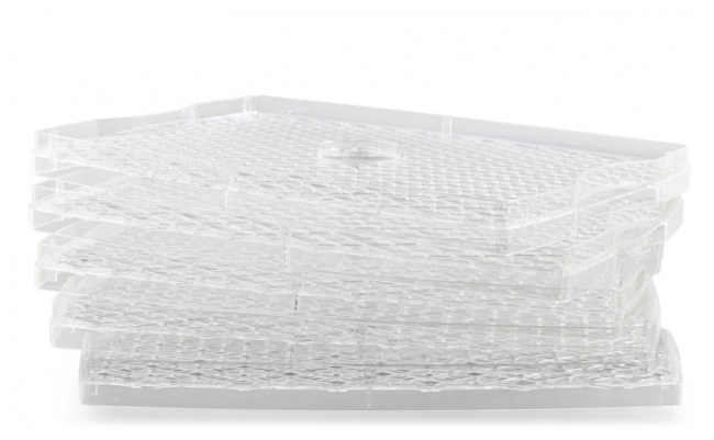 Usazení ventilátoru, výborně řešená sušící plata a navíc možnost jejich výškového nastavení garantuje rovnoměrné a rychlé sušení. Materiál sušících plat vám zase dopřeje jednoduché vyndání usušeného ovoce i zeleniny. Suroviny k platům nepřilnou, snadno je proto oddělíte.