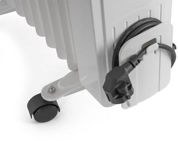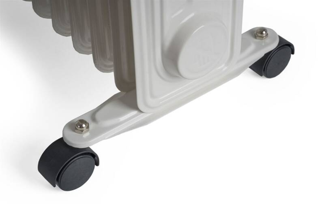 Radiátor můžete bezpečně přesouvat nebo přenášet díky pojezdu s kolečky a madlům, která snižují riziko popálení. Olejový radiátor G21 Merapi má i pojistku proti pádu. Pokud by nedopatřením došlo k jeho převržení, vypne se, takže nehrozí riziko požáru.